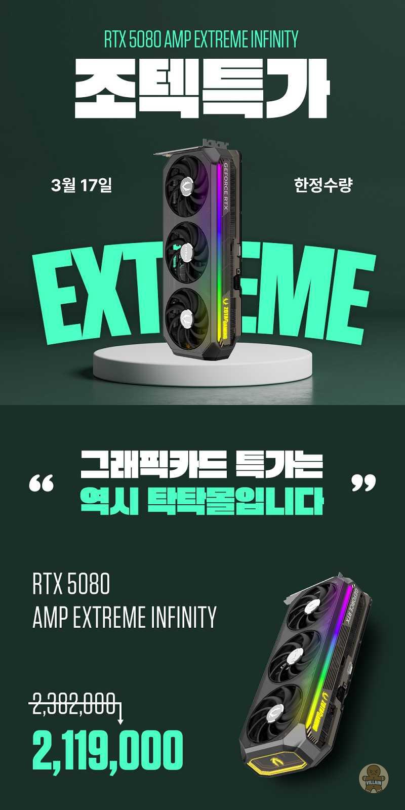 조텍, 강력한 지포스 RTX 5080 AMP Extreme Infinity 그래픽카드 특가