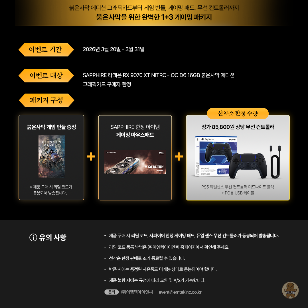이엠텍아이엔씨 'SAPPHIRE RX 9070 XT 붉은사막 에디션' 1+3 패키지