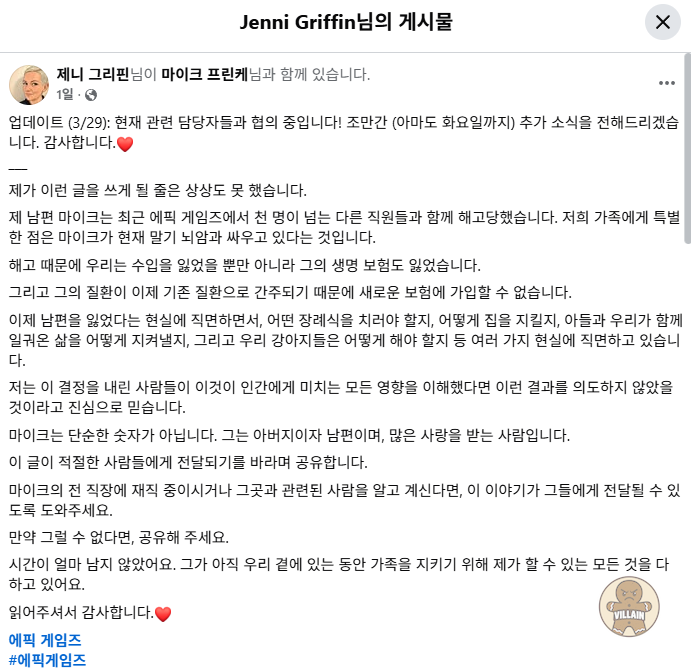 에픽 게임즈 해고 사태, 안타까운 사연