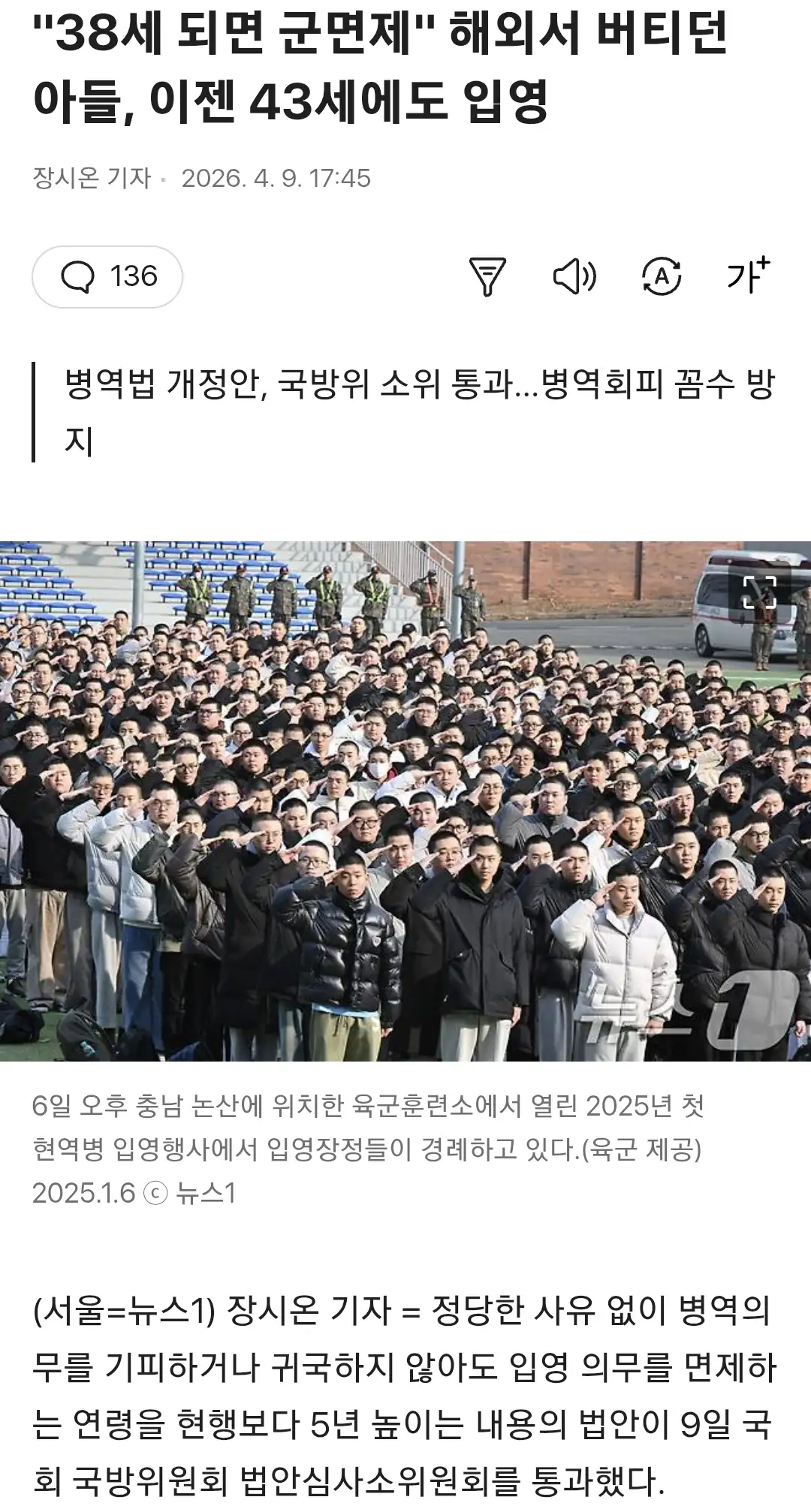 미입국 군면제 38세에서 43세로 연장