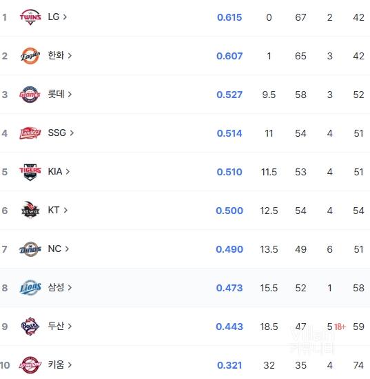 16일을 기준으로 9위이고, 차이가 워낙 많이 나서 기적이 일어나지 않는한 플레이오프까지는 힘들지 않을까 싶습니다.