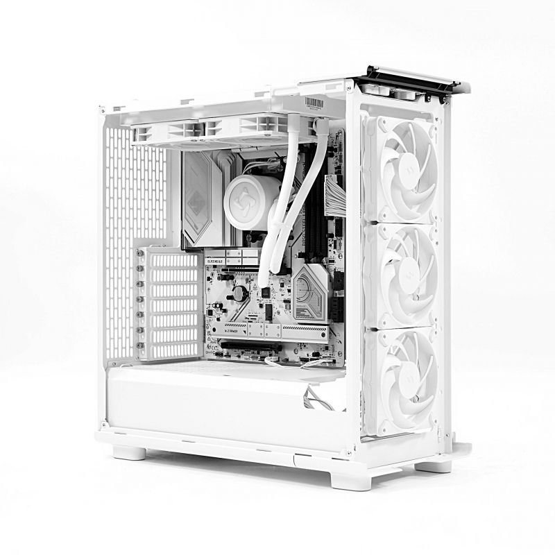 Fractal Design Epoch는 냉각 흐름을 중심으로 전체 구조를 설계했다. 전면을 기준으로 한 이유는 단순하다. 냉각 성능이 시스템 안정성에 가장 직접적인 영향을 주기 때문이다. 전면에 충분한 유입 면적을 확보하면 팬의 효율은 극대화되고, 내부 부품까지 전달되는 공기 흐름이 일정하게 유지된다.