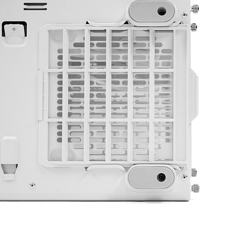 전면 패널은 손으로 당기기만 하면 분리되는 툴리스 구조다. 별도의 나사나 공구가 필요 없고, 청소나 필터 점검이 즉시 가능하다. 상단 패널은 패브릭 탭을 잡아 슬라이드 방식으로 열고 닫는데, 가벼운 동작만으로 접근성이 확보된다. 측면 강화유리 패널 역시 간단히 분리되기 때문에 부품 교체나 내부 청소가 훨씬 수월하다.