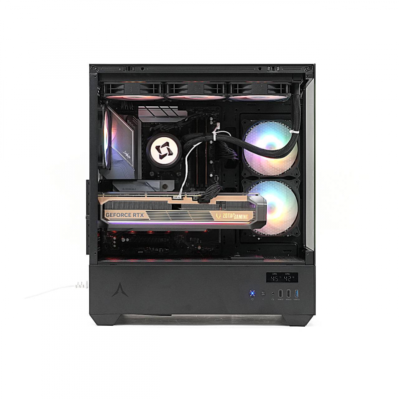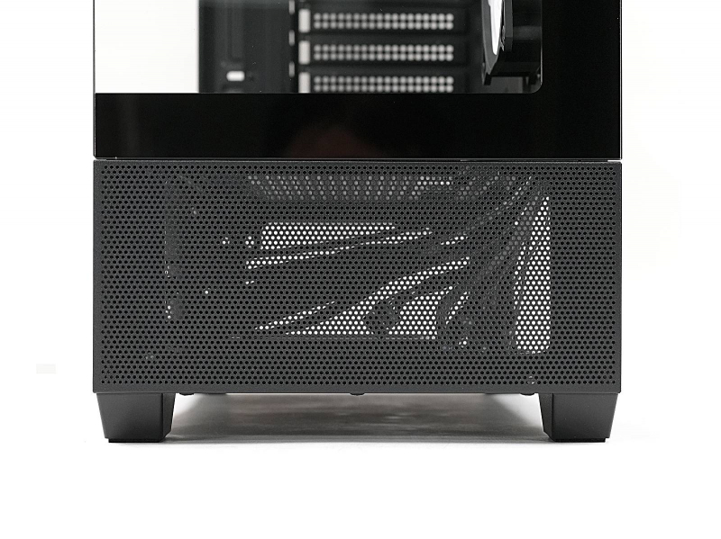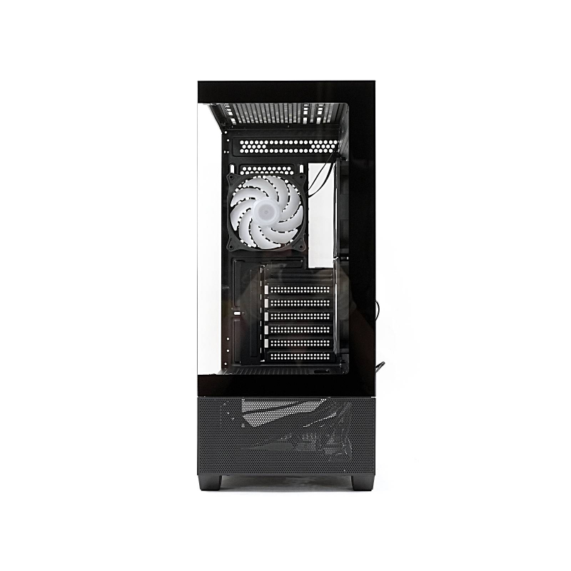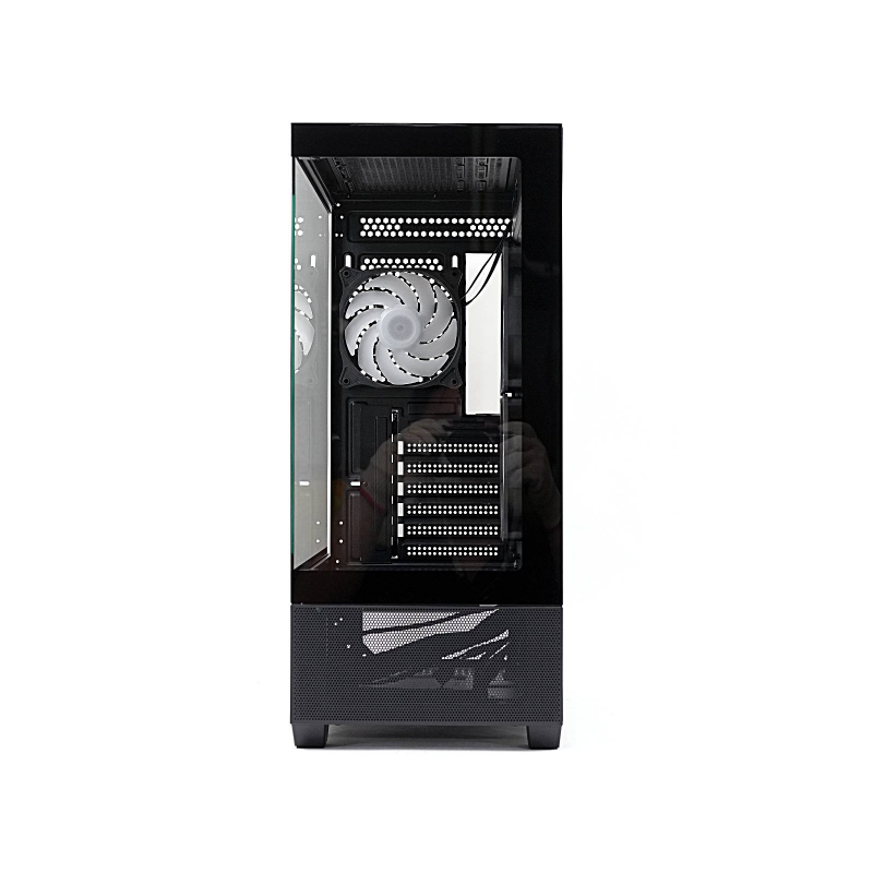 기본 외형은 강화유리로 개방된 어항형 디자인이다. 내부 빌드가 고스란히 드러나므로 RGB 연출이나 수랭 튜브 라인업까지 모두 시각적으로 부각된다. 강화유리 케이스가 갖는 발열 문제는 전면 하단의 메쉬 흡기 구조로 대응했다. 단순히 보여주기만 하는 케이스가 아니라, 기본 성능도 확보하려는 접근이다. 시장에서 흔히 볼 수 있는 ‘값싼 강화유리 케이스’와 차이를 만드는 요소는 바로 이런 균형감이다.