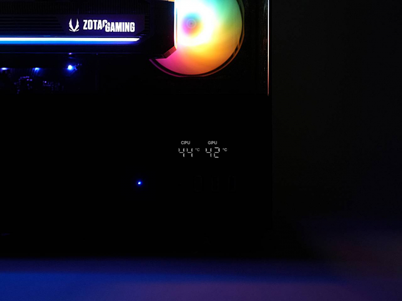 두 번째 장치는 전면 측면부의 LED 디스플레이다. 단순히 튜닝용 액세서리가 아니다. CPU와 GPU의 온도를 실시간으로 표시하는 패널이다. 지금까지 사용자가 시스템 온도를 확인하려면 별도의 모니터링 소프트웨어를 실행하고, 게임 중이라면 화면을 전환하거나 오버레이를 띄워야 했다. 번거롭고, 순간의 집중을 깨뜨리는 과정이다.