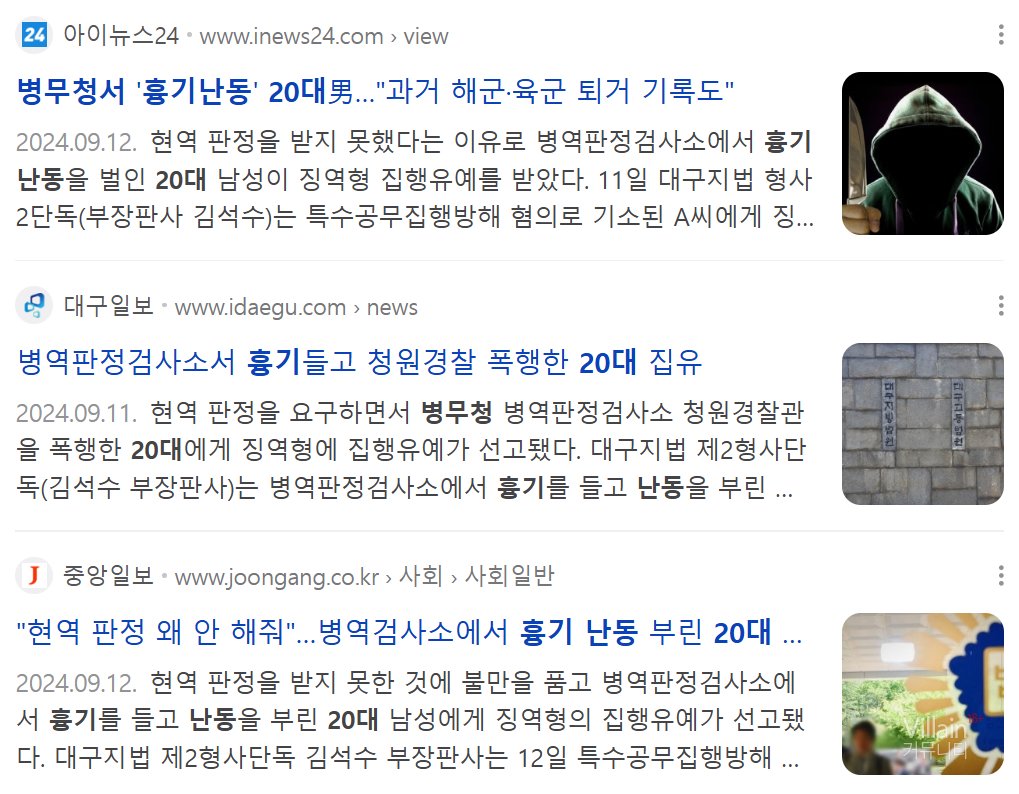 A씨는 지난 7월 15일 병무청 중앙병역판정검사소에서 청원경찰관 B(여·40)씨를 흉기로 위협하고 폭행한 혐의로 재판에 넘겨졌다. 앞서 A씨는 지난 2021년 5월 17일 해군교육사령부 훈련소에 입영했지만 '파괴적 충동조절 및 품행장애' 등의 사유로 퇴거 조치를 받았다.