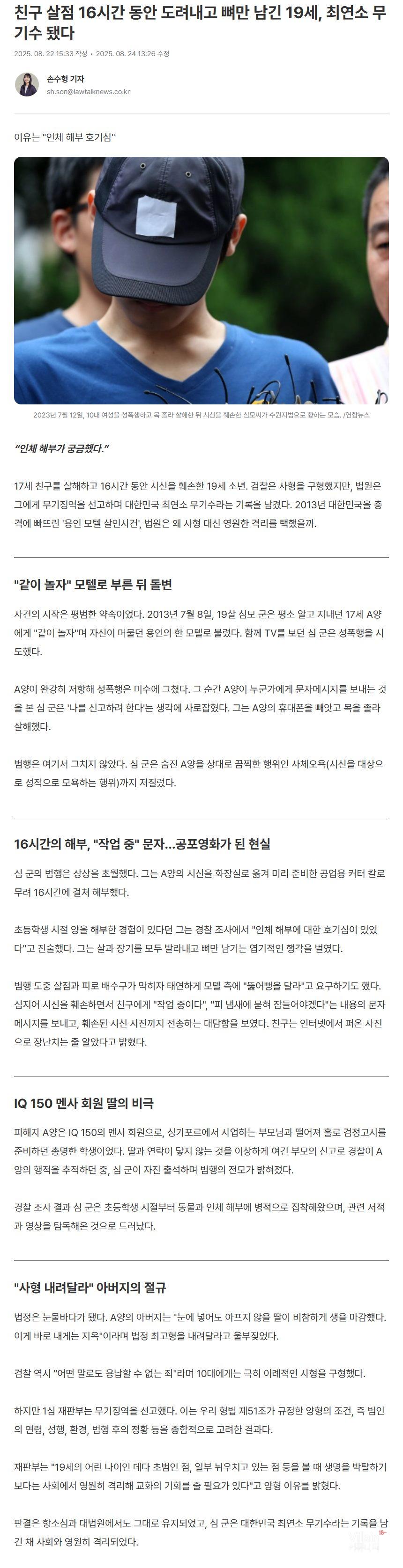 친구 살점 16시간 동안 도려내고 뼈만 남긴 19세, 최연소 무기수 됐다