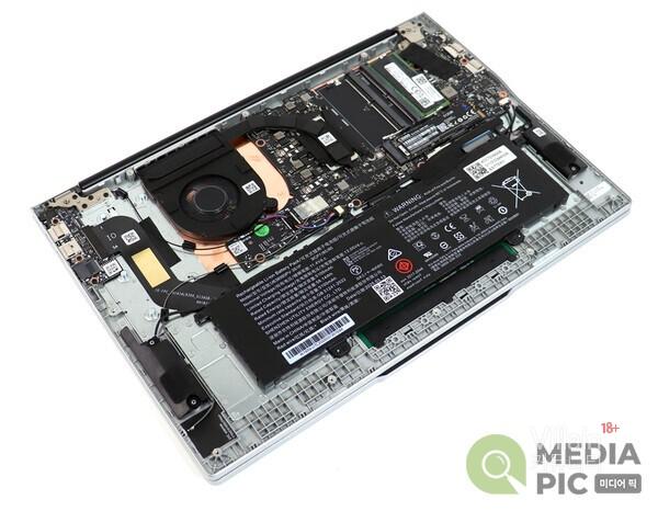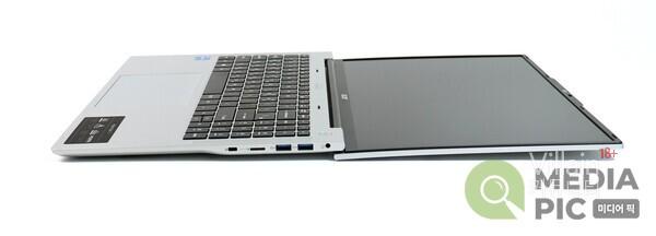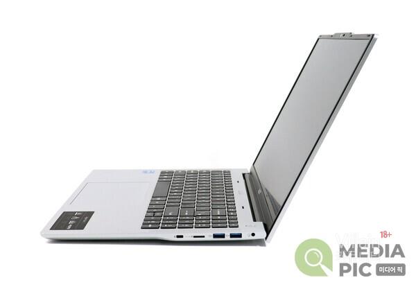 16인치 노트북이지만, 무게도 가볍고 두께도 얇아 휴대성 면에서도 충분히 높은 점수를 줄 수 있을 것이다. 먼저 무게는 배터리 포함 1.7kg으로 들고 다니기에 전혀 부담스럽지 않은 수준이며, 두께도 18.9mm로 상당히 얇아 백팩이나 일반 가방에 넣고 다니기에 안성맞춤이다.