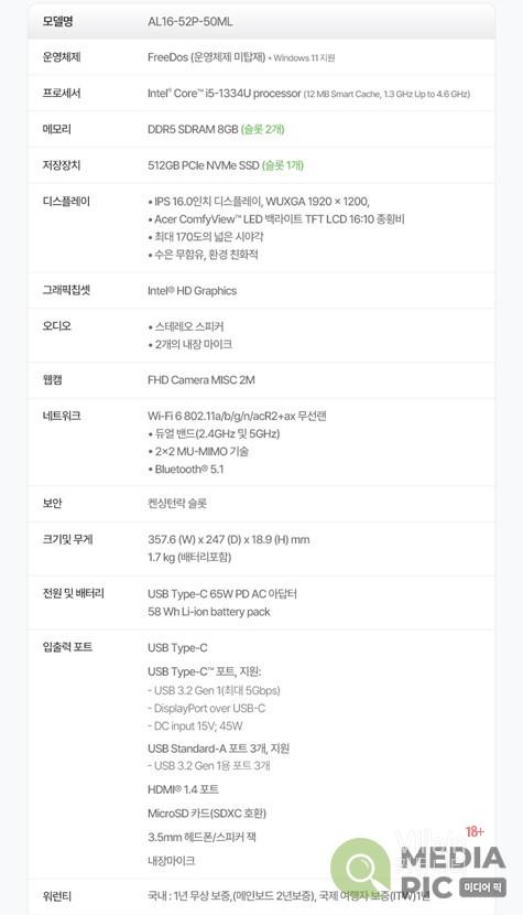 당신의 Life를 바꿔줄 실용성 끝판왕 노트북 '에이서 아스파이어 라이트 16'
