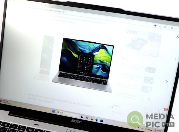 실제로 외부에서 '에이서 Aspire Lite 16'로 문서 작성 및 웹 서핑 등 여러 가지 업무를 진행해 본 결과 대략 7~8시간까지 배터리 걱정 없이 사용할 수 있었다.