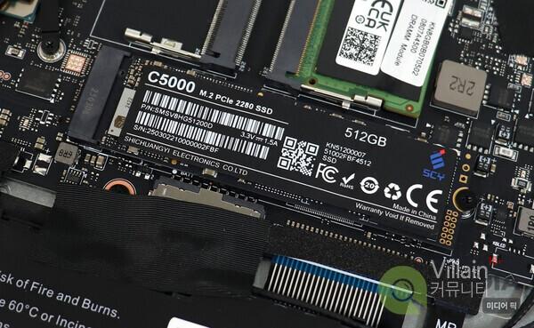 스토리지로 512GB PCIe Gen 4 NVMe SSD를 탑재했다. 참고로 PCIe Gen 4 인터페이스는 최대 64Gb/s의 속도로 작동한다.