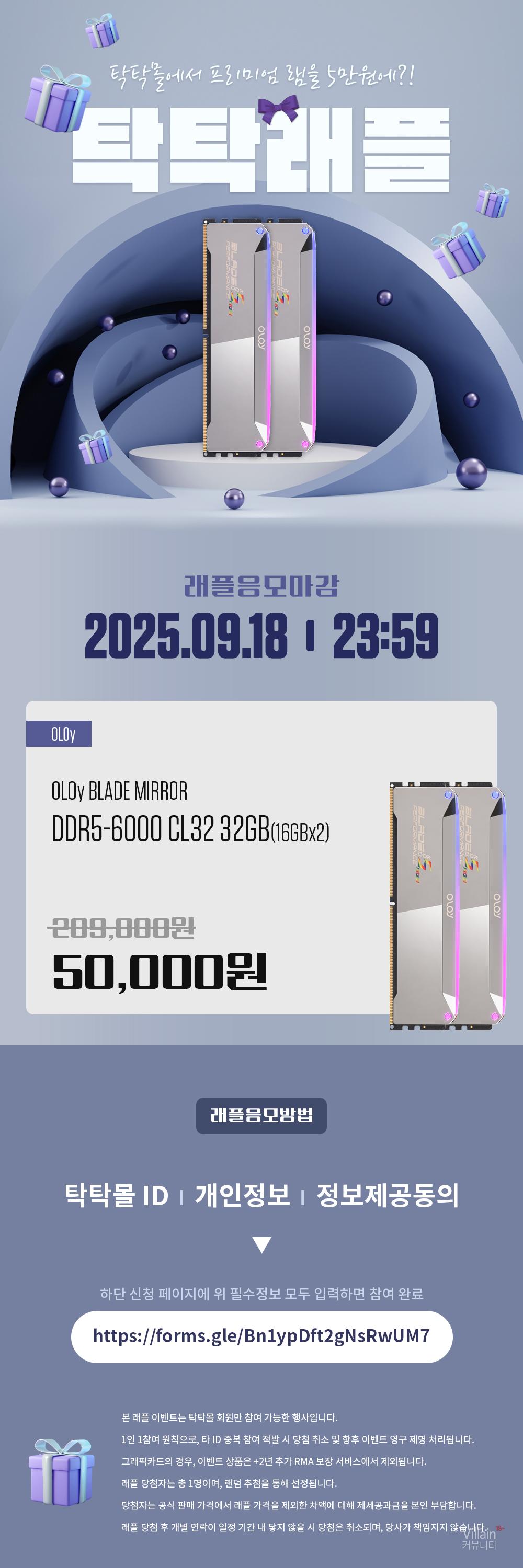 5만원에 DDR5 메모리 구매하세요! 조텍 탁탁몰 래플 이벤트 진행